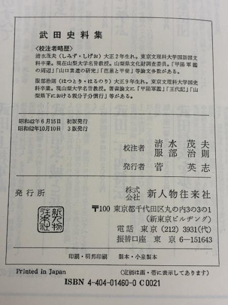 武田史料集 3版 (史料叢書) KADOKAWA(新人物往来社) 清水 茂夫