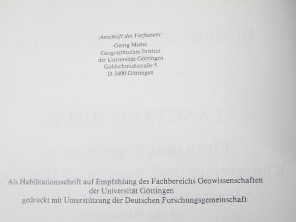Langtan Himal. Flora und Vegetation als Klimazeiger und -zeugen in Himalaya [ A Prodromus of the Vegetation Ecology of theHimalayas]
