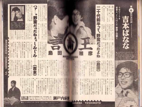 • 著者 小山ゆう、原秀則、ほりのぶゆき、上條淳士、山本英夫、山田玲司、森真理、ほんまかずひろ、おおつぼマキ、高梨くみ、たなかじゅん、天久聖一、笹口拓也、石坂啓、六田豊、さそうあきら、とがしやすたか、細野不二彦、西原理恵子、〈「言論王」島田雅彦VS吉本ばなな 2頁〉〈いとうせいこう「転脳 キングコブラとフセイン大統領」2色3頁〉