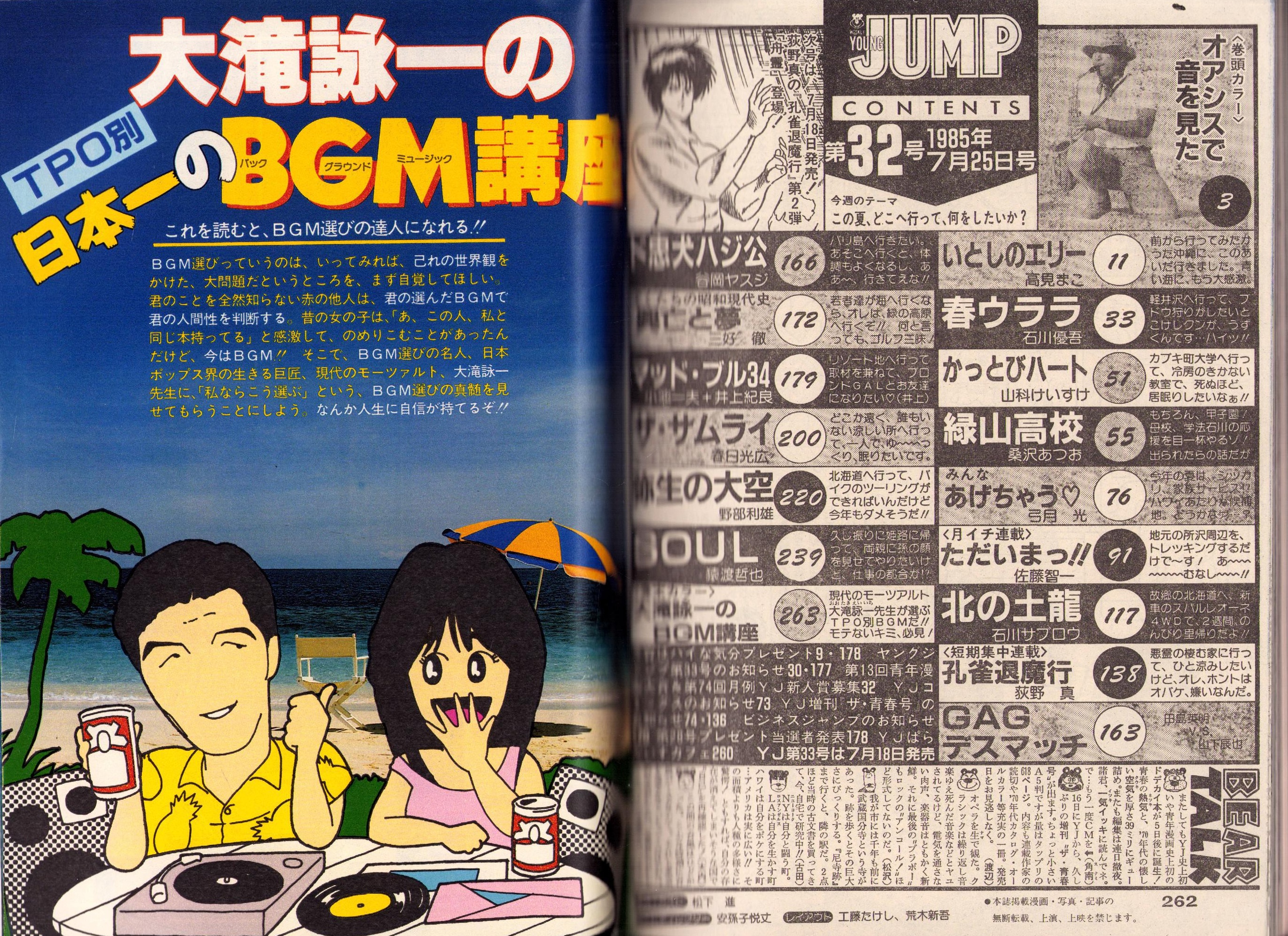 • 著者 〈渡辺貞夫のアフリカ カラー4頁〉〈大滝詠一の日本一のBGM講座 カラー4頁〉、高見まこ、石川優吾、山科けいすけ、桑沢あつお、弓月光、佐藤智一、石川サブロウ、荻野真、谷岡ヤスジ、三好徹、井上紀良、春日光広、野部利雄、猿渡哲也