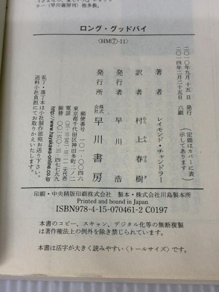 【※イタミ有り】ロング・グッドバイ (ハヤカワ・ミステリ文庫 チ 1-11) 早川書房 レイモンド・チャンドラー