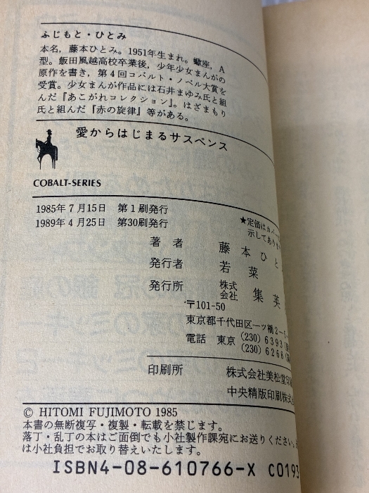 愛からはじまるサスペンス: まんが家マリナ最初の事件 (集英社文庫 コバルトシリーズ 183-A) 集英社 藤本 ひとみ