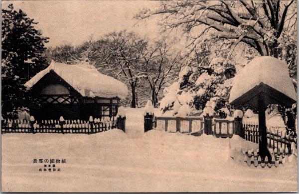 1001349■戦前 絵葉書■植物園の雪景