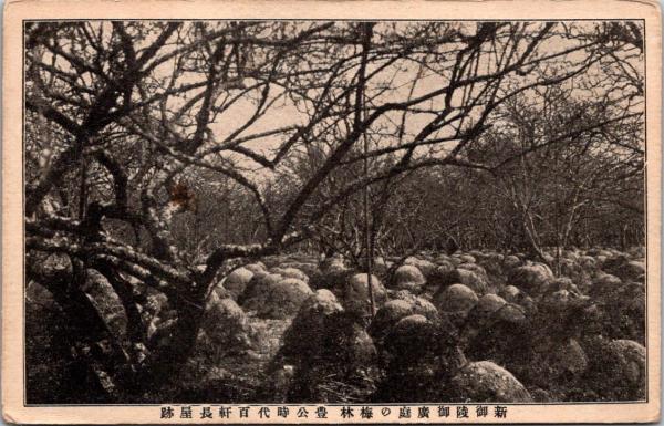 1001383■戦前 絵葉書■新御陵御廣庭の梅林豊公時代百軒長屋跡