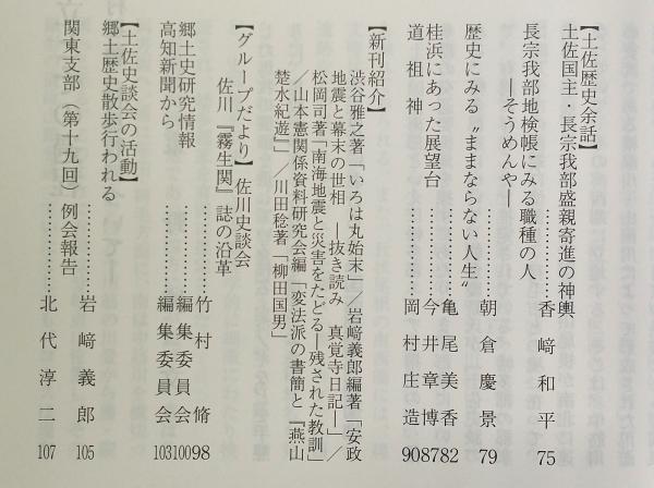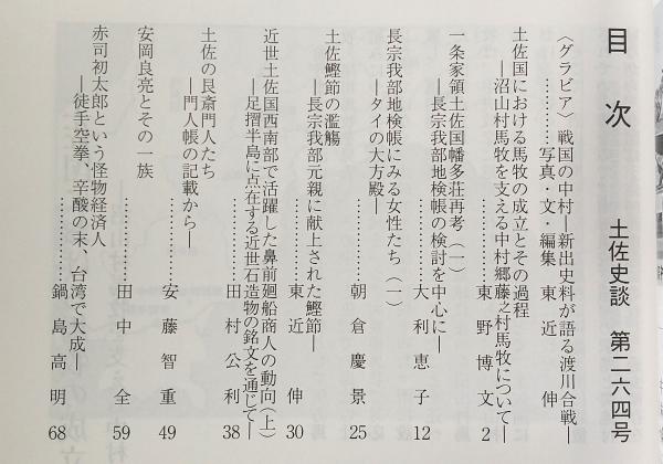 土佐史談 264号 土佐国における馬牧の成立とその過程:沼山村馬牧を支える中村郷藤之村馬牧について…ほか