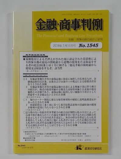 金融・商事判例 2018年7月15日号No.1545