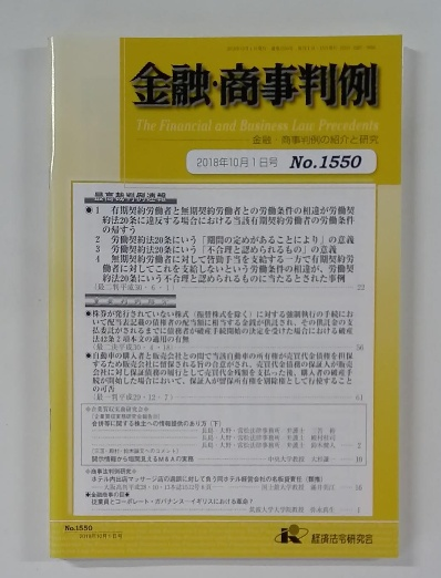 金融・商事判例 2018年10月1日号 No.1550