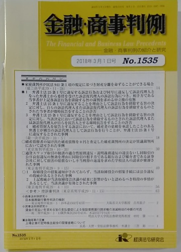 金融・商事判例 2018年3月1日号No.1535