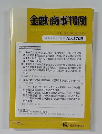 金融・商事判例 2024年12月15日号 No.1705