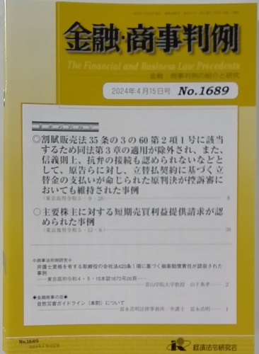 金融・商事判例 2024年4月15日号 No.1689