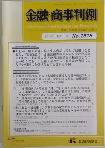 金融・商事判例 2017年6月15日号 No.1518