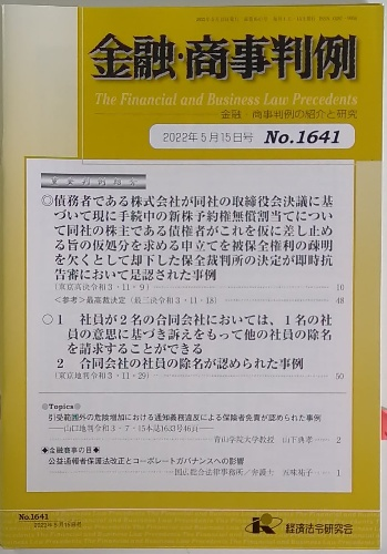 金融・商事判例 2022年5月15日号 No.1641