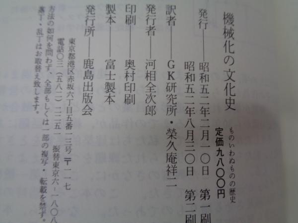 機械化の文化史 ものいわぬものの歴史 新装版
