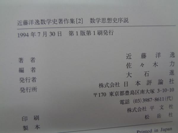 近藤洋逸数学史著作集 第2巻 (数学思想史序説)
