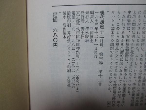 現代思想 1975年12月 「特集:ボーヴォワール 性と階級闘争」 (第三巻第十二号)