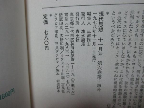 現代思想 1978年11月 「特集:イエス キリスト教の核心」 (第六巻第十四号)