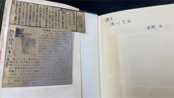 科学者になる人のために 「湯川(秀樹)」宛謹呈本