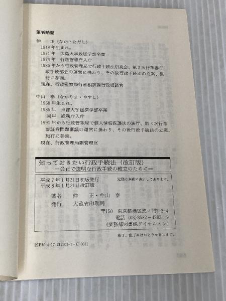 知っておきたい行政手続法: 公正で透明な行政手続の確立のために (知っておきたい法律シリーズ 1) 大蔵省印刷局 中山 泰