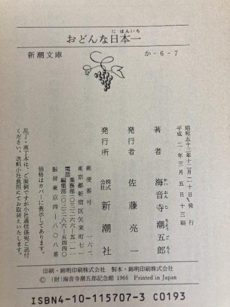 おどんな日本一 (新潮文庫 草 157-7) 新潮社 海音寺 潮五郎