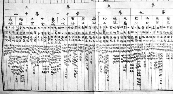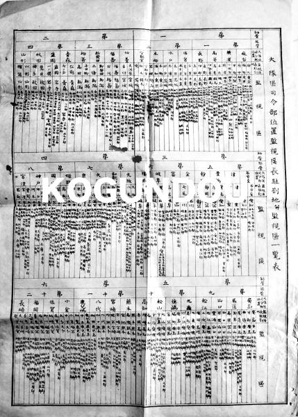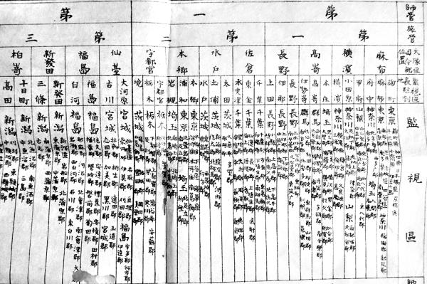 大隊区司令部位置監視区長駐剳地並監視区一覧表 B4判片面印刷1枚刷り少穴 明治版