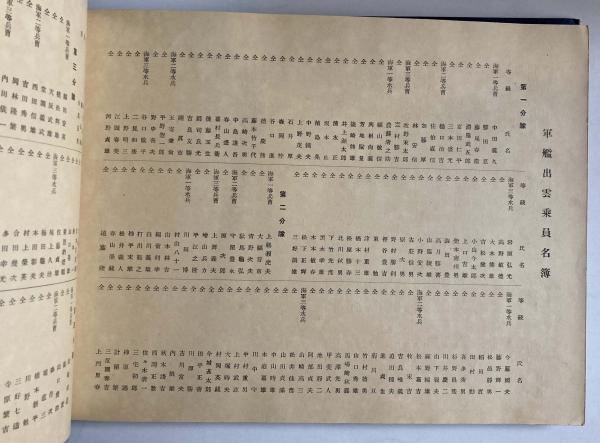 総員写真、艦内出雲神社餅つきの様子、甲板初稽古風景、観兵式、台湾神社参拝、上海風景他、軍艦出雲乗員名簿