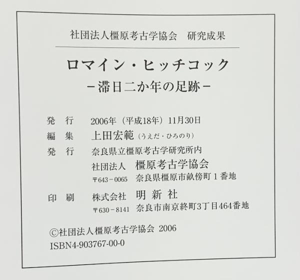 ロマイン・ヒッチコック-滞在2か年の足跡-社団法人橿原考古学協会 2006年