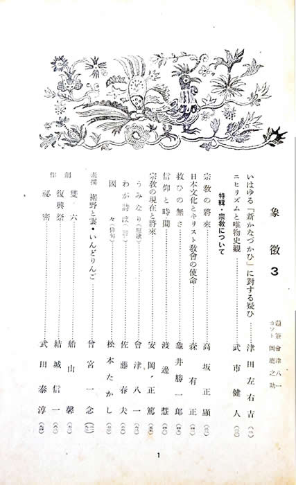 季刊 象徴 第参号  いはゆる「新かなづかひ」に対する疑ひ、ニヒリズムと唯物史観、宗教の現在と将来 他