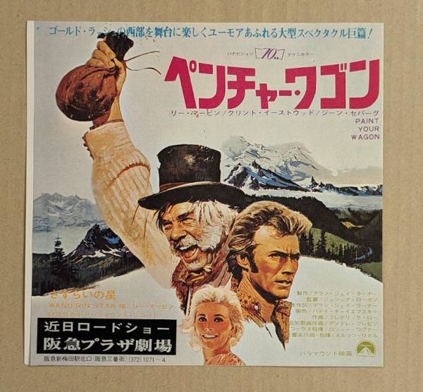 二つ折りの映画チラシ1枚です。 監督: ジョシュア・ローガン 出演: リー・マービン クリント・イーストウッド 他 ※状態BC(経年傷み・ヤケ・汚れ。折り目にややズレ、フチ少傷み有り。)