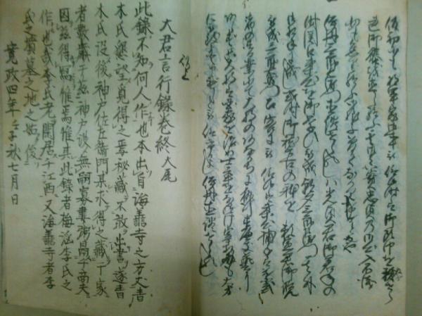 大君言行録 (寛政四年 写本)