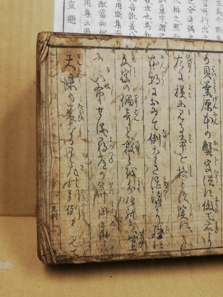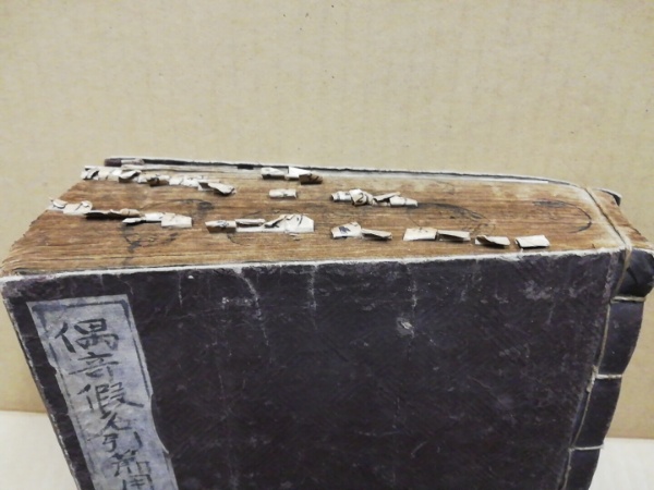 • 解説 表紙は自作、始め一丁と終わり一丁半落丁(原本コピーあり)、天に見出し貼付け多、三方ヤケ蔵印多汚れあり、ヨレ頁めくりスレ文字消えあり