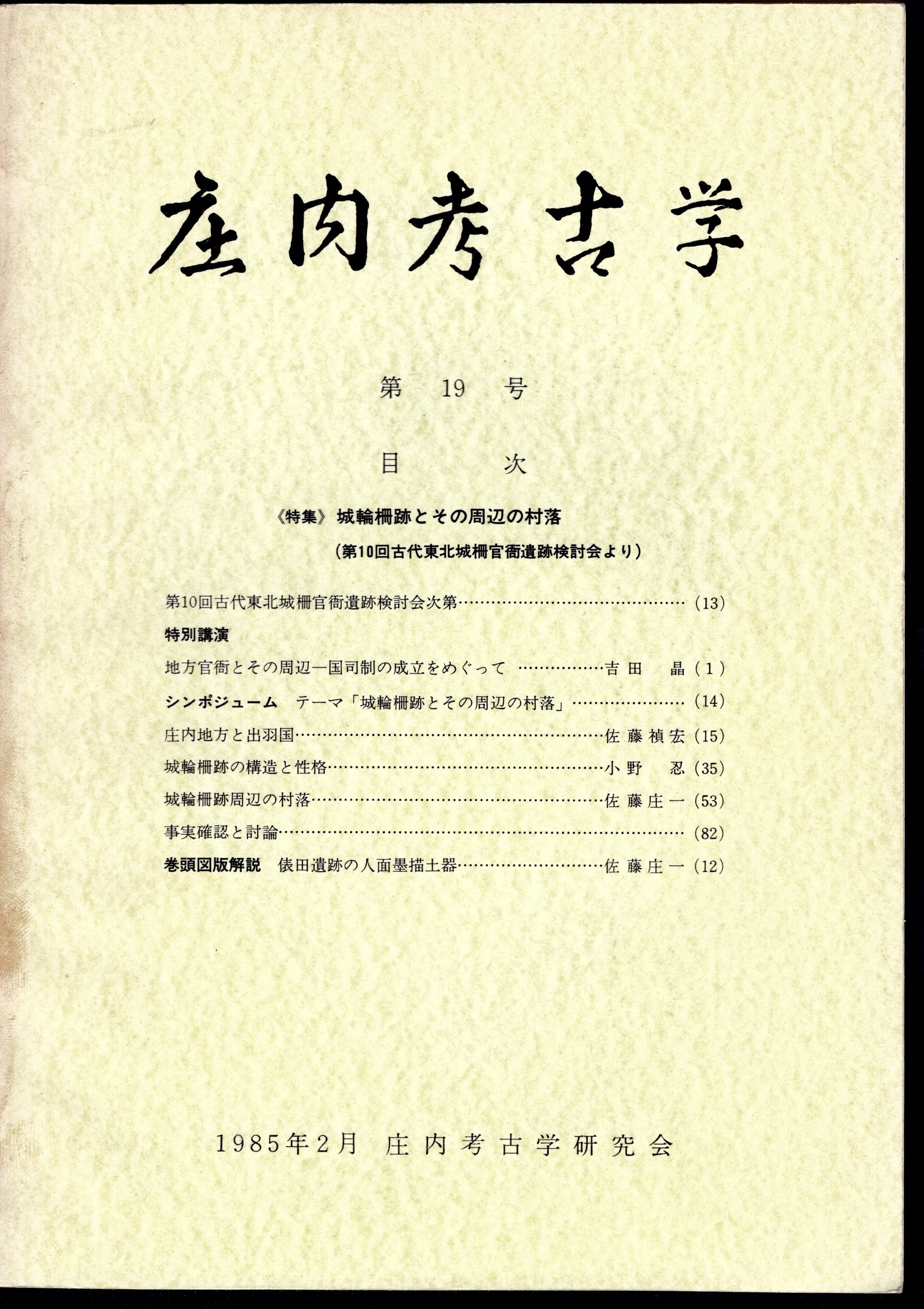 庄内考古学 第19号 特集・城輪柵跡とその周辺の村落(第10回古代東北城柵官衙遺跡検討会より)