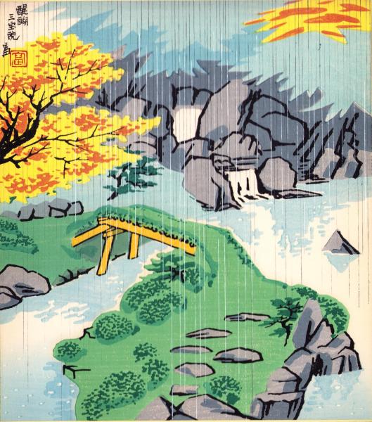(木版画色紙)徳力富吉郎「千家の庭」