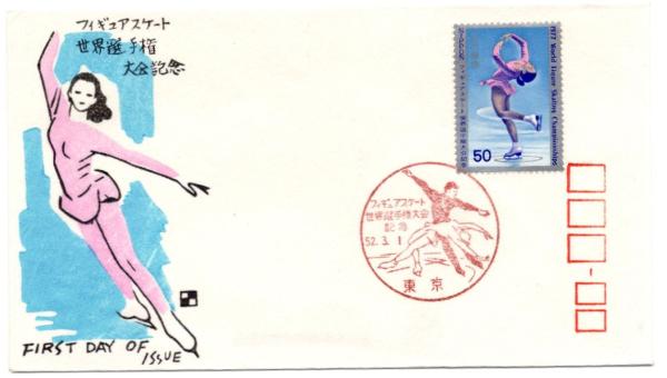 N26031151〇郵便切手 初日カバー 彩色木版画 フィギュアスケート 世界選手権大会記念 FDC First Day of Issue 昭和52年○和本古書古文書