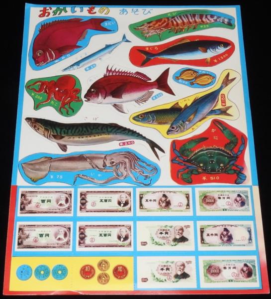 【駄玩具】おかいものあそび 昭和30~40年代 子供銀行券付き/えび/まぐろ/たい