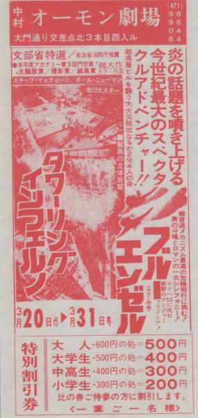 1004◆▲映画 割引券▲ タワーリングインフェルノ ブルーエンゼル 中村 オーモン劇場 (愛知県・中村区大門)