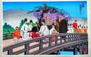 f25042384〇彩色木版画 ハガキサイズ 広島 岩国 錦帯橋 錦絵 浮世絵 昭和年代〇和本古書古文書