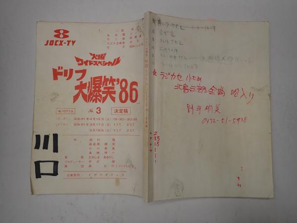 TV台本 ドリフ大爆笑'86 No.4 最終頁欠 4/21・22香盤表貼付