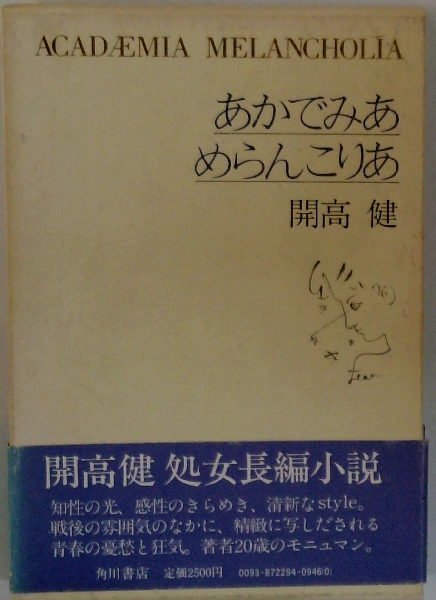 あかでみあ めらんこりあ <角川文庫> 知性の光、感性のきらめき、清新なstyle。戦後の一時期を背景に、精緻に写し出される青春の憂愁と狂気……生きることに疲れた「憂鬱(あかでみあ)な大学生(めらんこりあ)」計介と、彼を「つめたい・澄んだ・くらい瞳」で見つめる若い女・道子を軸として展開されるこの小説は、自身学生だった開高健が20歳の年に書き上げた幻の〈処女長編〉である。事物や人物や情況がもつ複雑で微妙な感触と気配を、鮮明で魅力的な表現に結晶させる稀有の才能をすでに示した、みずみずしい記念碑的作品。 <角川文庫>