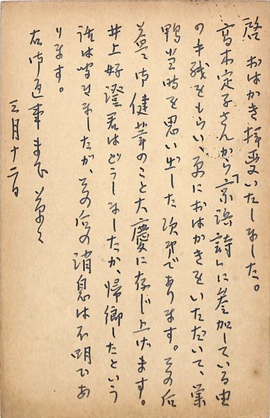 下田惟直葉書(ペン/礼状)