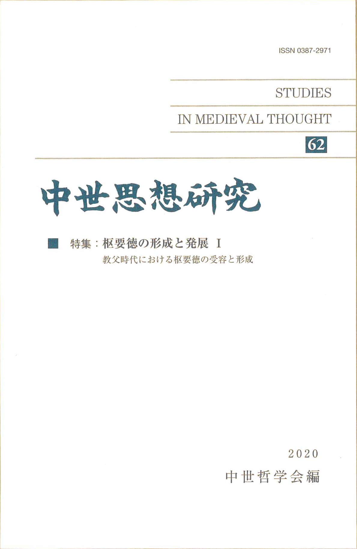 中世思想研究 第62号: 枢要徳の形成と発展;I