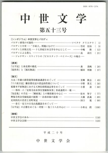 中世文学 53号 中世文学とパロディ
