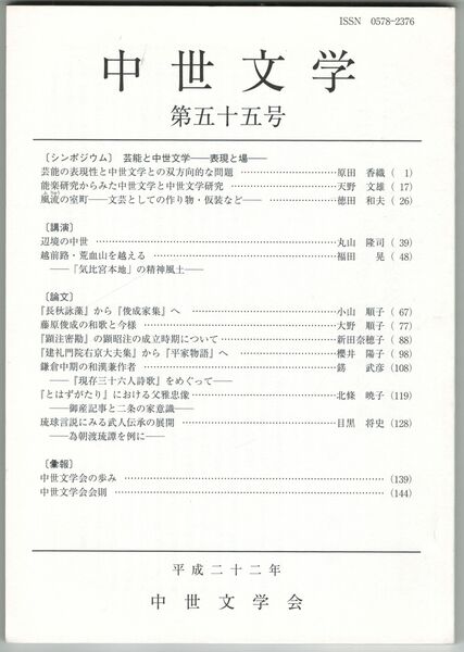 中世文学 55号 芸能と中世文学 表現と場