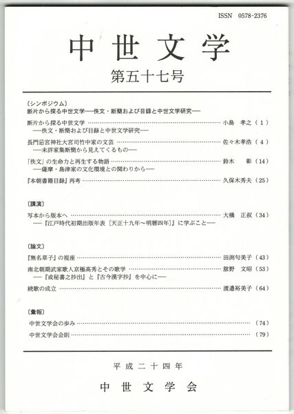 中世文学 57号 断片から探る中世文学