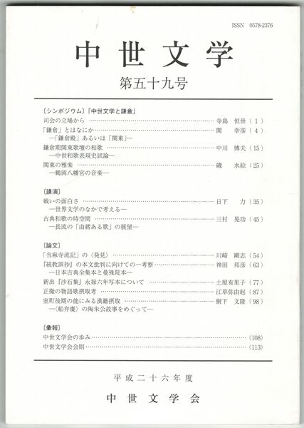 中世文学 59号 「中世文学と鎌倉」