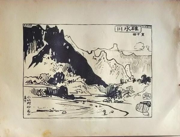 D26021547〇中村不折画集 第二 碓氷川 其15 五料村 妙義山 碓氷川漫画 昭和年代〇和本古書古文書