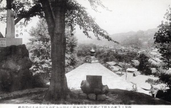 N26022109〇戦前絵葉書○岩手県福岡町(現在の二戸市)の名所 成田山奥の院(史蹟松の丸) 宝珠屋根の成田山本殿 岩谷橋 古写真○和本古書古文書