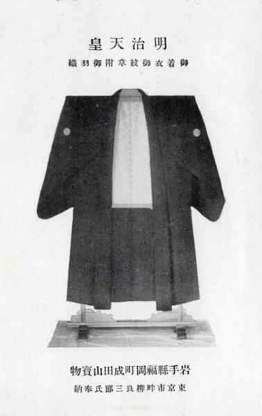 N26022112〇戦前絵葉書○岩手県福岡町(現在の二戸市)の名所 成田山宝物 明治天皇御着衣御紋付御羽織 東京市畔柳氏奉納 写真○和本古書古文書