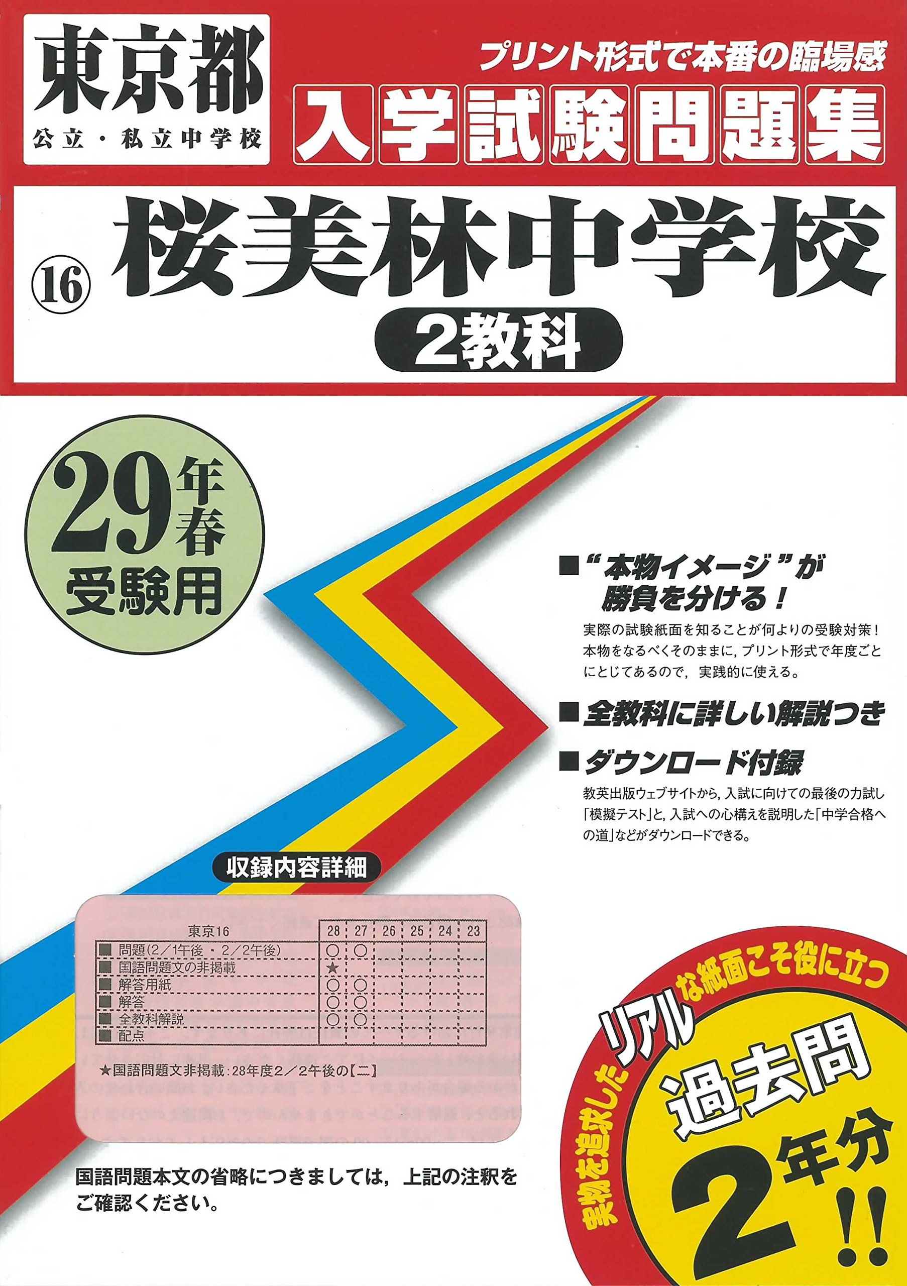 桜美林中学校(2教科)過去入学試験問題集平成29年春受験用(実物に近いリアルな紙面のプリント形式過去問2年分) (東京都中学校過去入試問題集)