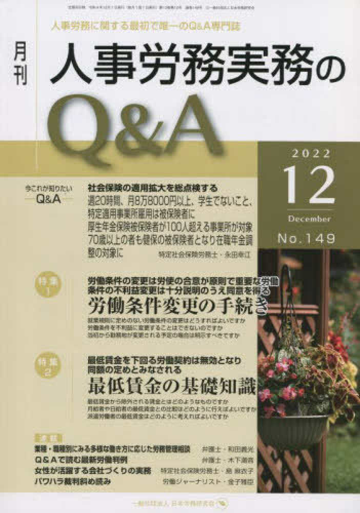 月刊人事労務実務のQ&A: 人事労務に関する最初で唯一のQ&A専門誌 (2022年12月号(No.149))
