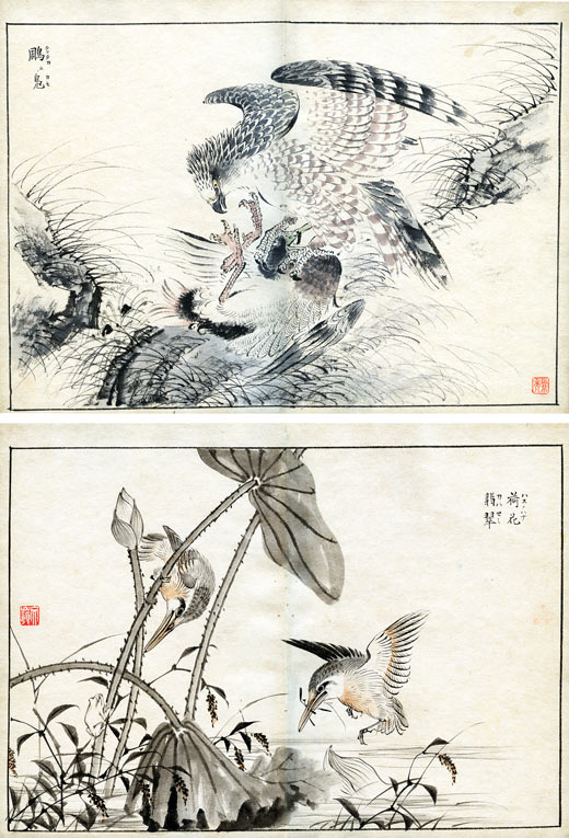 鳥類画帖 <彩色肉筆画 折帖>